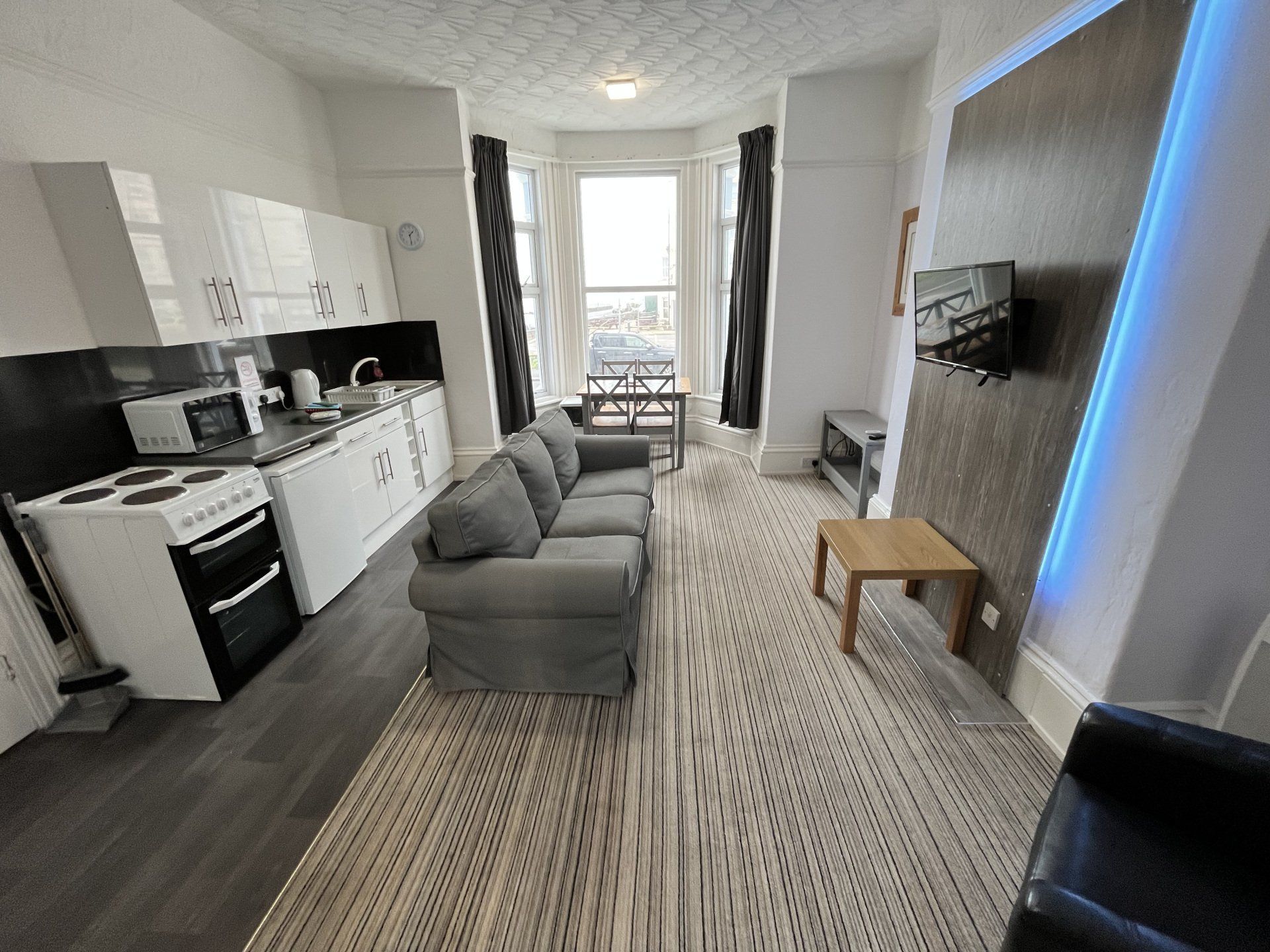 The Ocean Wave is our third-floor apartment, comfortably sleeping up to 4 guests. The master bedroom has a king size bed, the second bedroom has 2 single beds. Both the lounge and second bedroom have sea views overlooking the beautiful Bridlington North Bay beach.