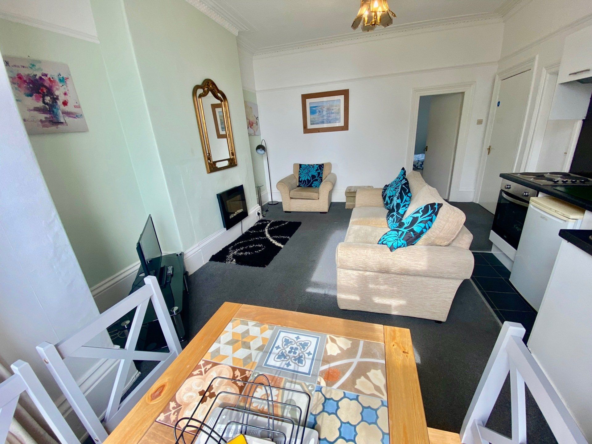 The Beach Apartment, on the ground floor, sleeps up to 4 guests. Enjoy easy access to this apartment and bay window sea views from the lounge. This holiday let comprises a double bed and 2 single beds in the bedroom. Now has a balcony for guests to use.